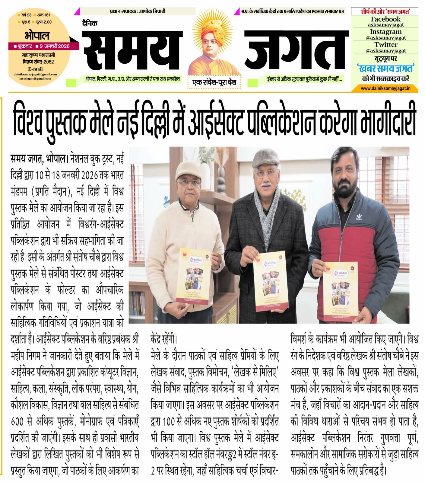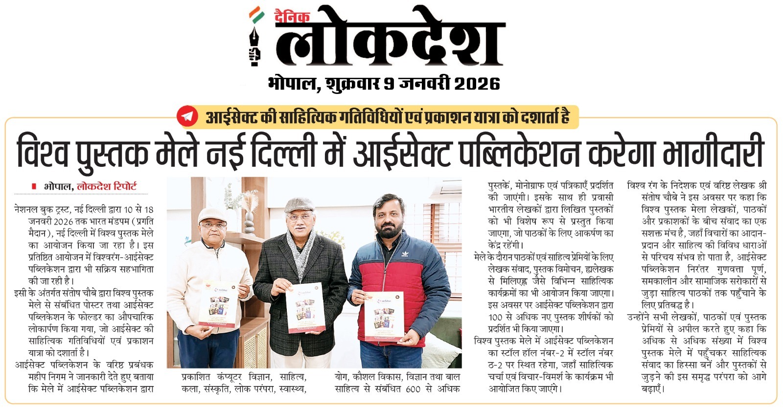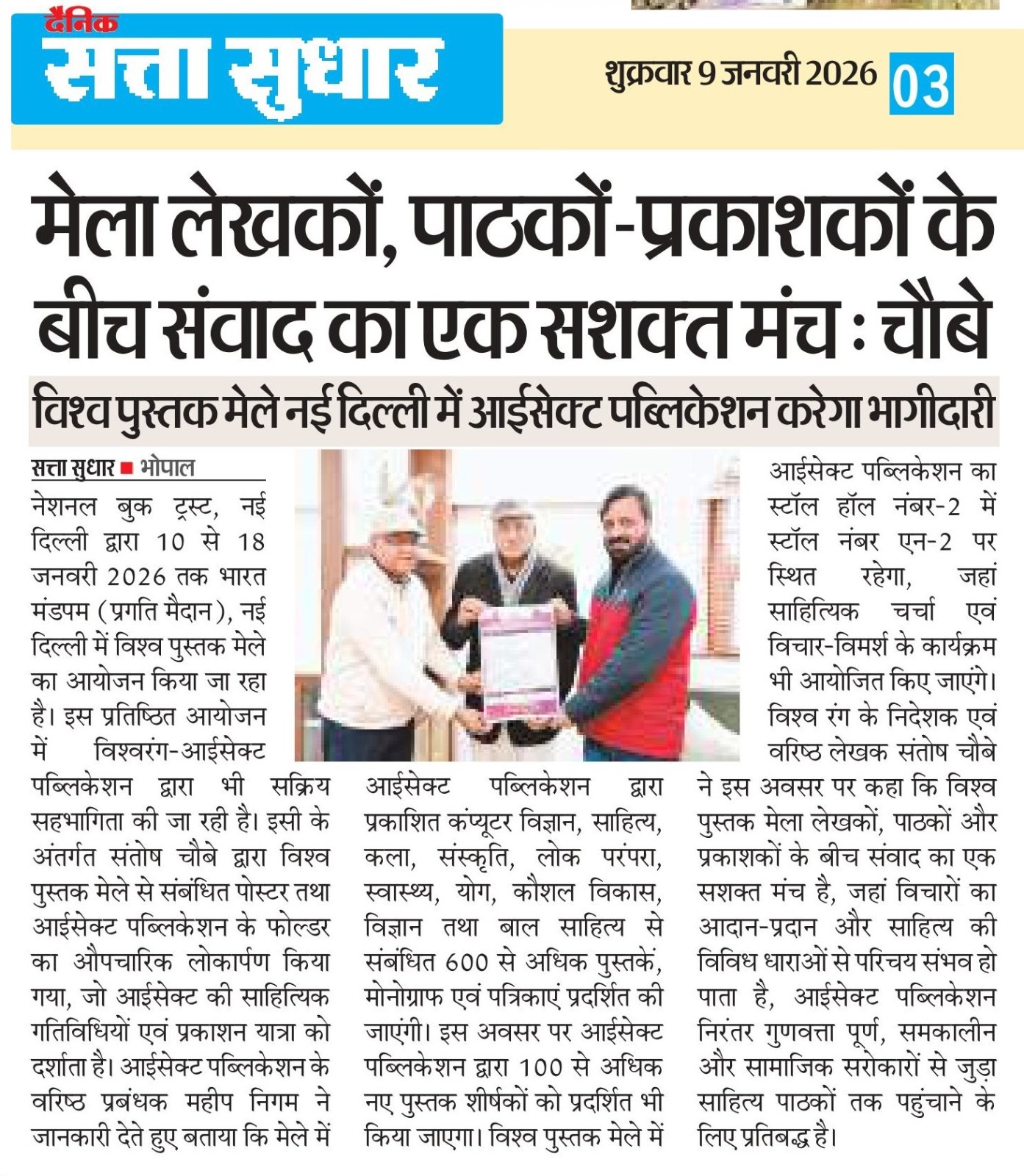 वरिष्ठ कवि, कथाकार एवं शिक्षाविद संतोष चौबे जी द्वारा लिखित चर्चित पुस्तकें अब 10–18 जनवरी 2026 तक प्रगति मैदान, नई दिल्ली में उपलब्ध। आईसेक्ट पब्लिकेशन के स्टॉल पर साहित्य, विचार और संवेदना की दुनिया से जुड़ने का अवसर न चूकें।