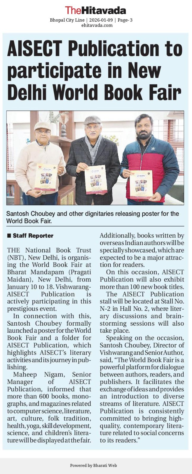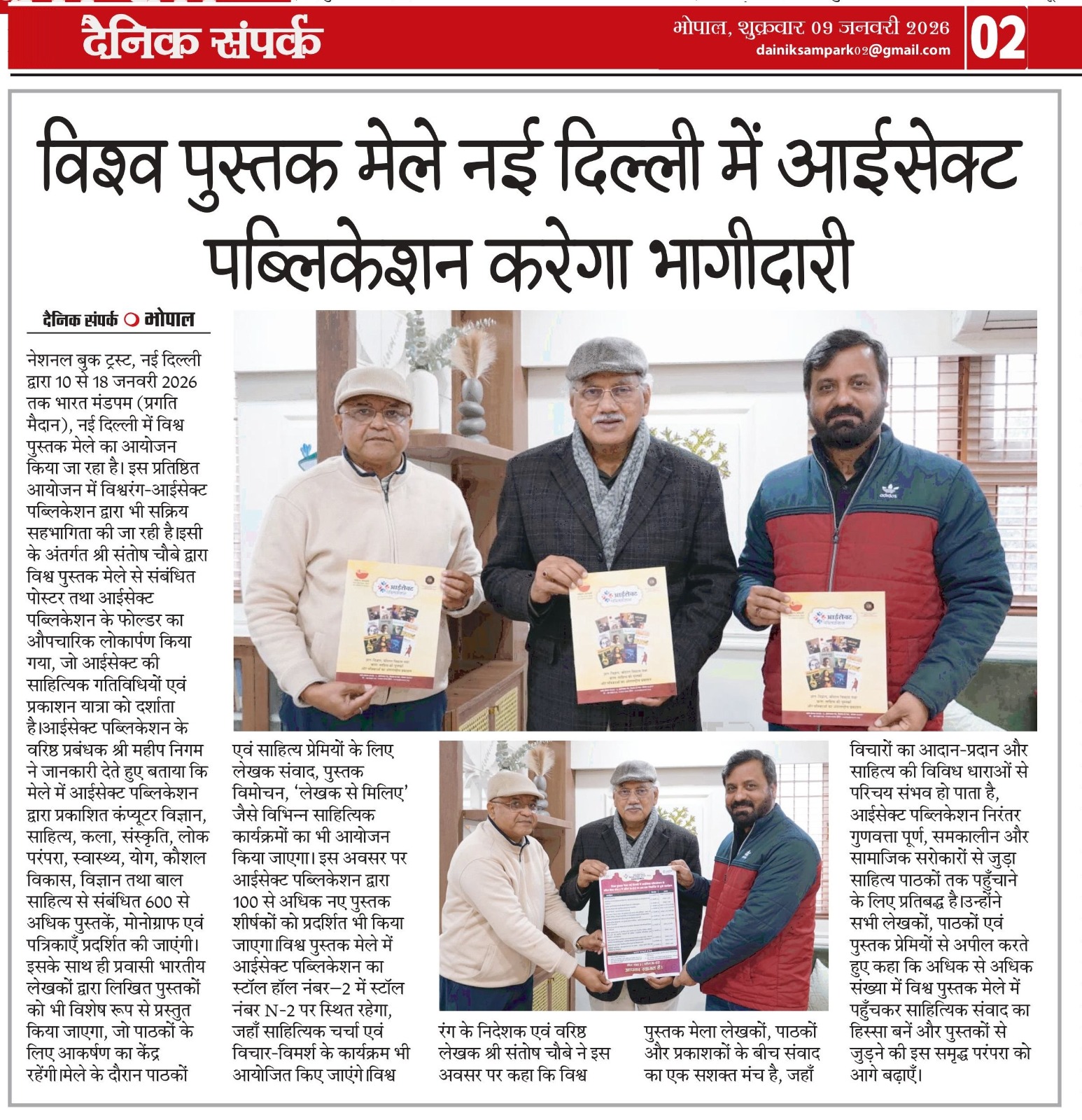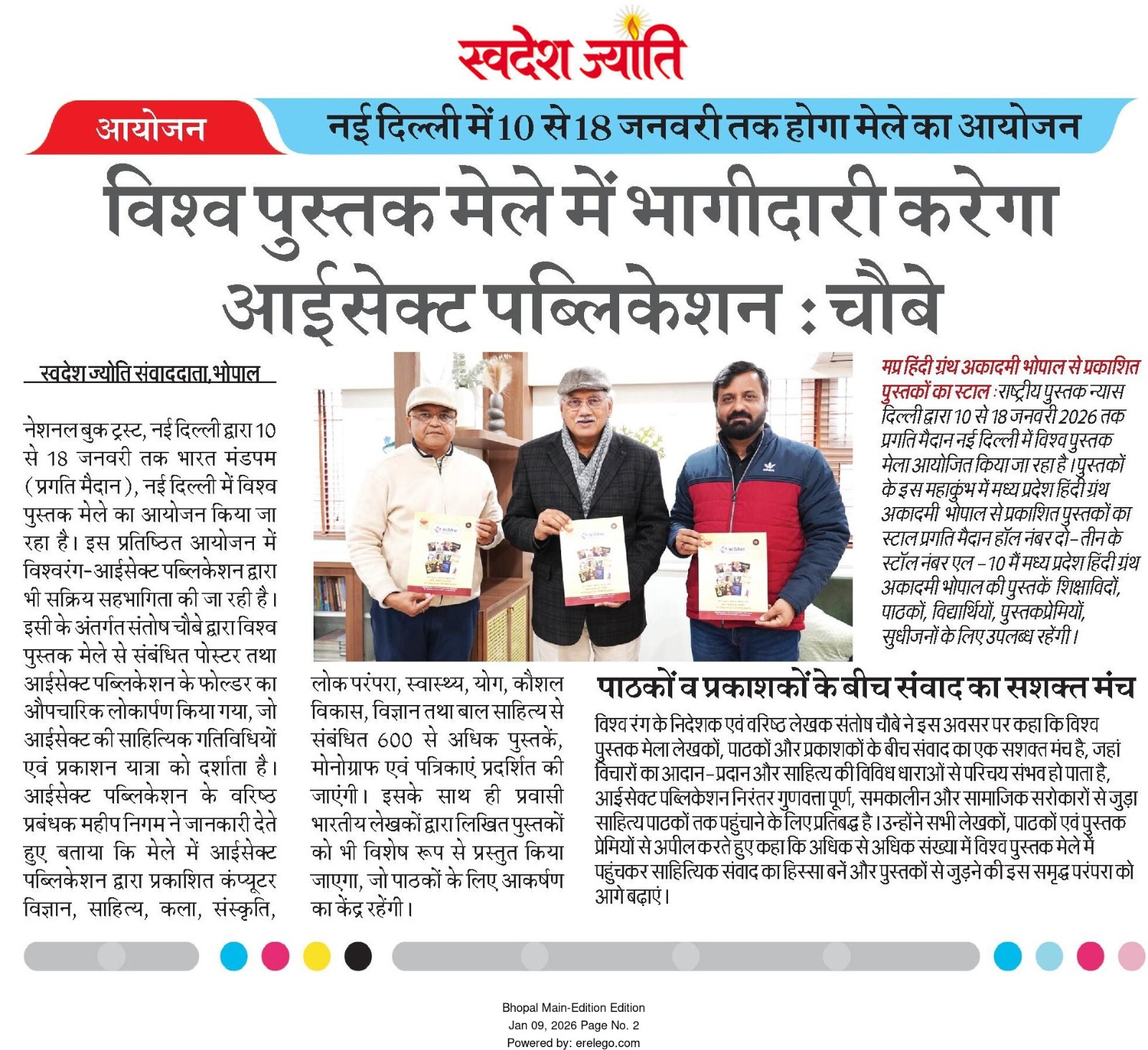 वरिष्ठ कवि, कथाकार एवं शिक्षाविद संतोष चौबे जी द्वारा लिखित चर्चित पुस्तकें अब 10–18 जनवरी 2026 तक प्रगति मैदान, नई दिल्ली में उपलब्ध। आईसेक्ट पब्लिकेशन के स्टॉल पर साहित्य, विचार और संवेदना की दुनिया से जुड़ने का अवसर न चूकें।