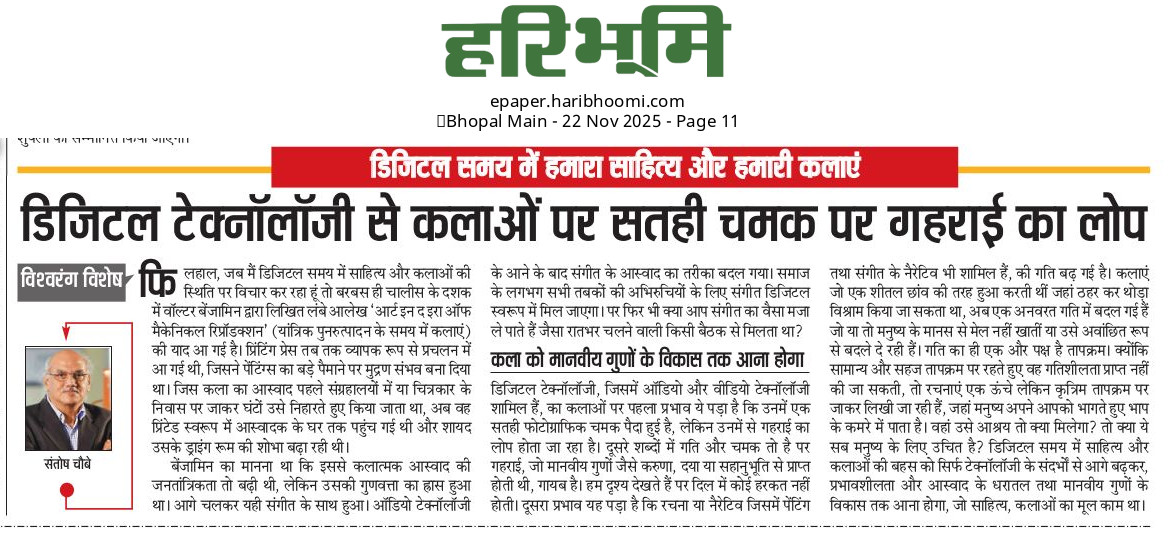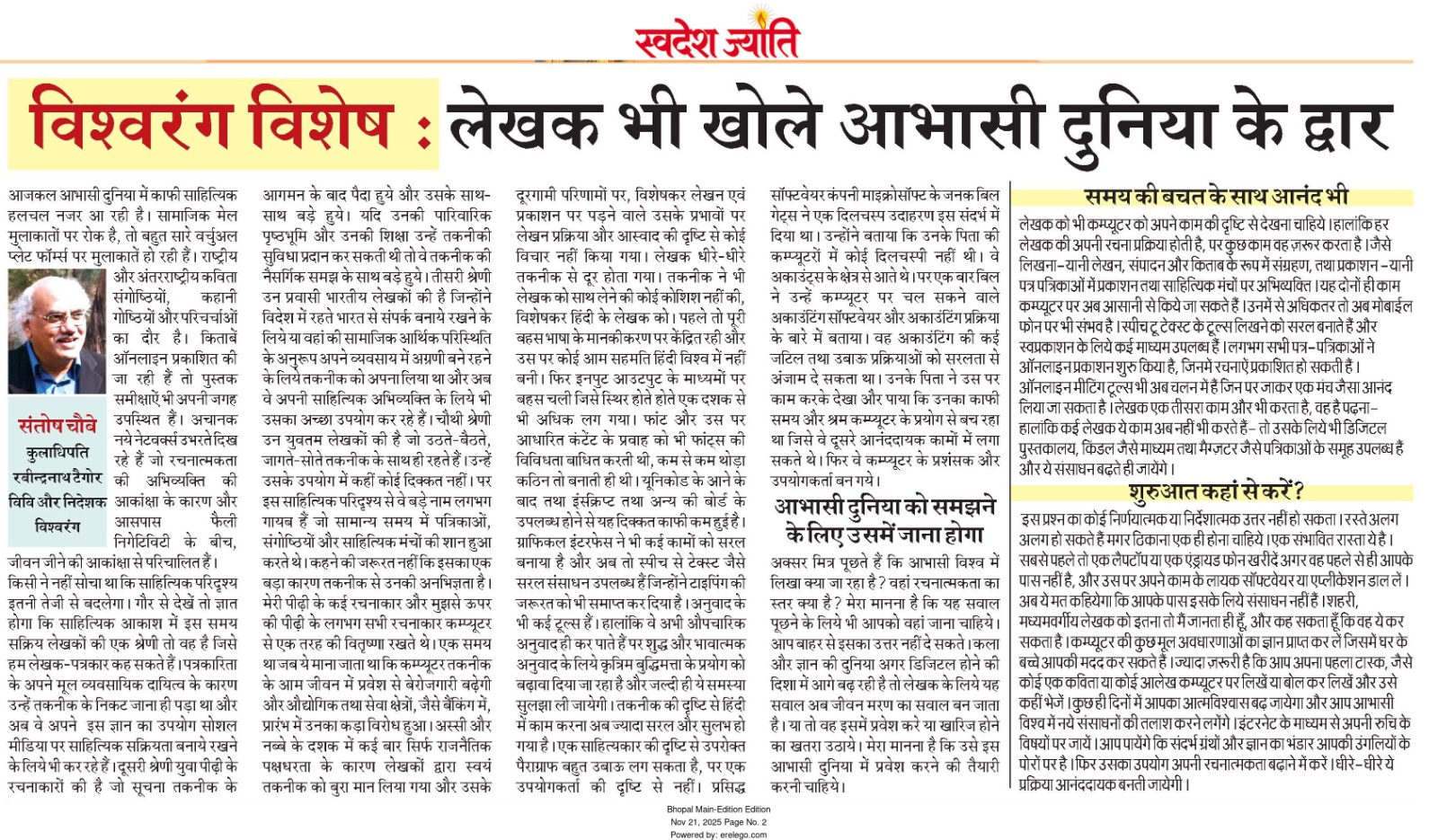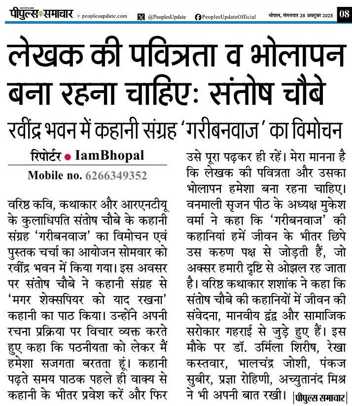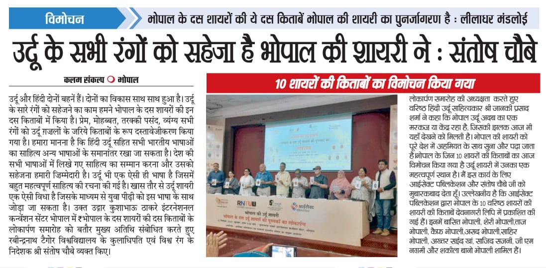 वरिष्ठ कवि, कथाकार एवं शिक्षाविद संतोष चौबे जी द्वारा लिखित चर्चित पुस्तकें अब 10–18 जनवरी 2026 तक प्रगति मैदान, नई दिल्ली में उपलब्ध। आईसेक्ट पब्लिकेशन के स्टॉल पर साहित्य, विचार और संवेदना की दुनिया से जुड़ने का अवसर न चूकें।