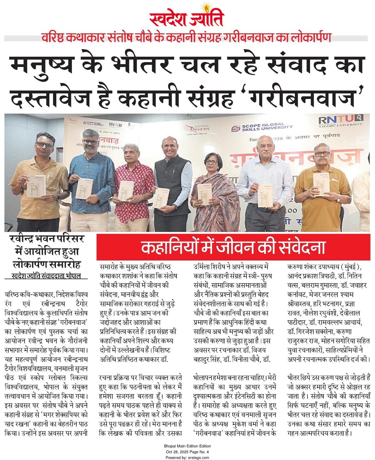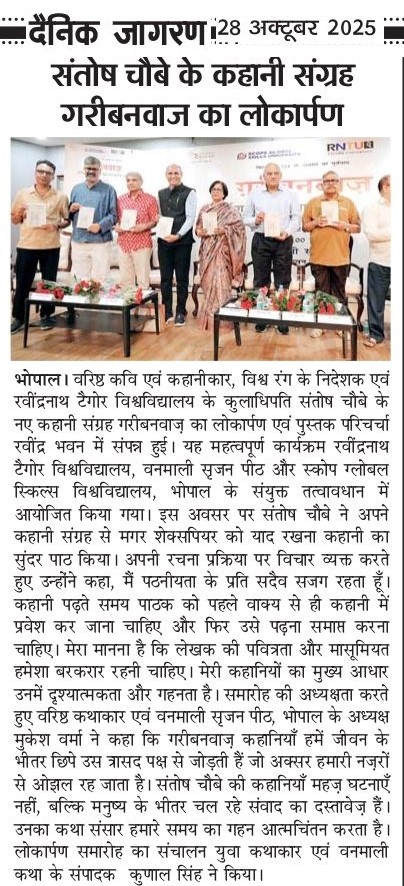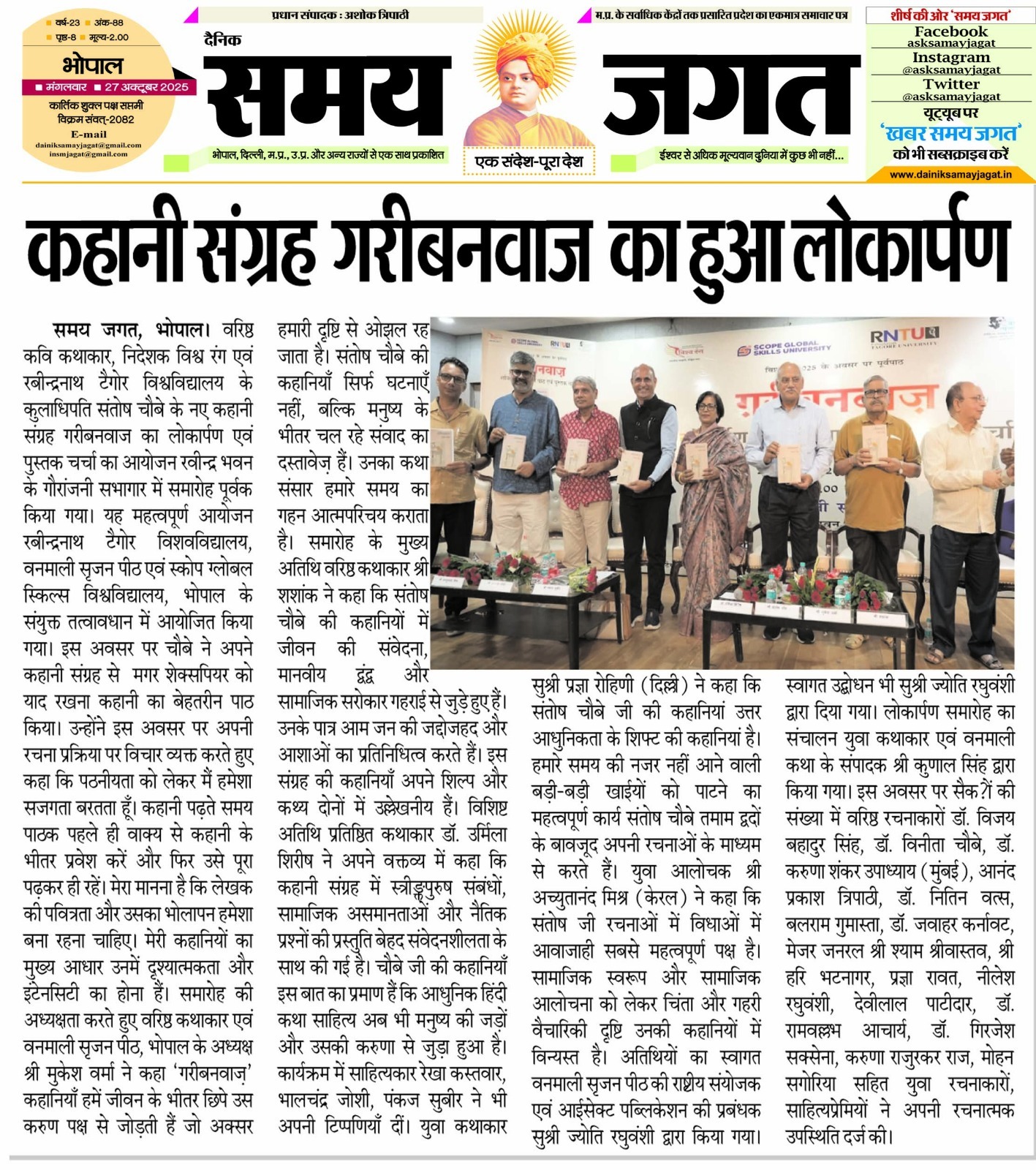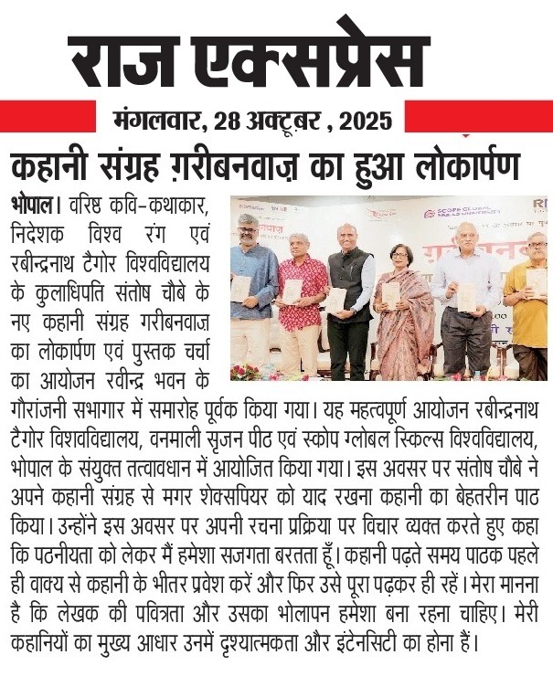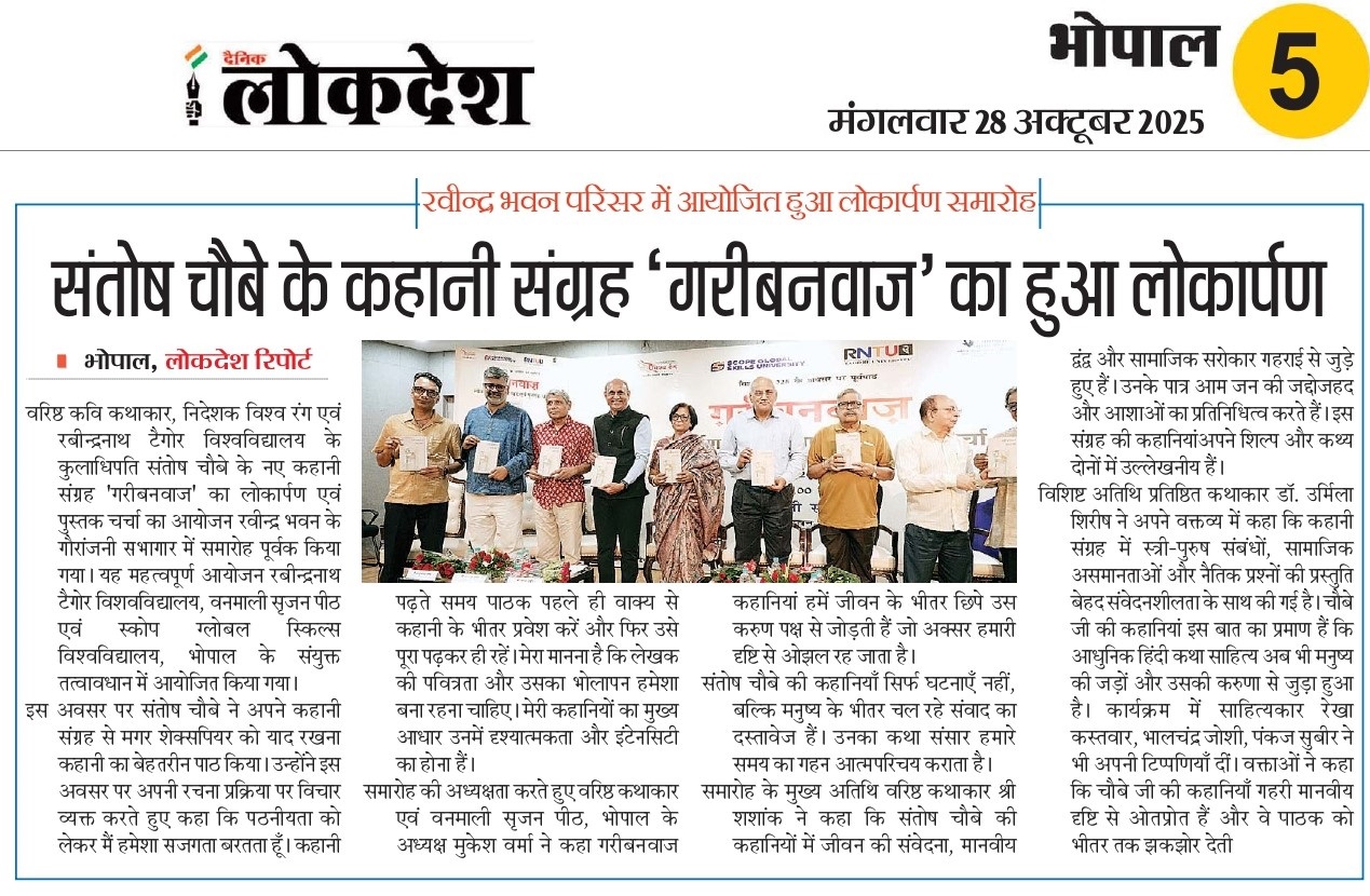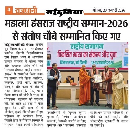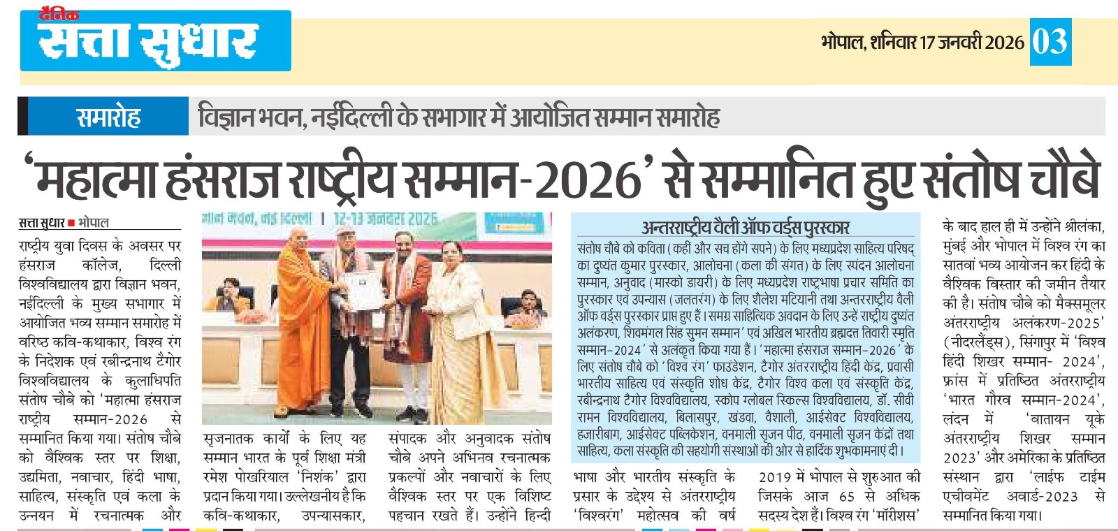 राष्ट्रीय युवा दिवस के अवसर पर हंसराज कॉलेज, दिल्ली विश्वविद्यालय द्वारा विज्ञान भवन, नईदिल्ली के मुख्य सभागार में आयोजित भव्य सम्मान समारोह में वरिष्ठ कवि–कथाकार, विश्व रंग के निदेशक एवं रबीन्द्रनाथ टैगोर विश्वविद्यालय के कुलाधिपति संतोष चौबे जी को "महात्मा हंसराज राष्ट्रीय सम्मान–2026 से सम्मानित किया गया।